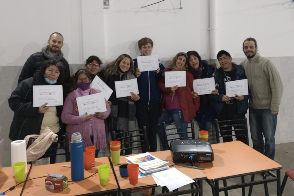 Algunas fotos que retratan las capacitaciones y a los emprendedores de los barrios que asisten.